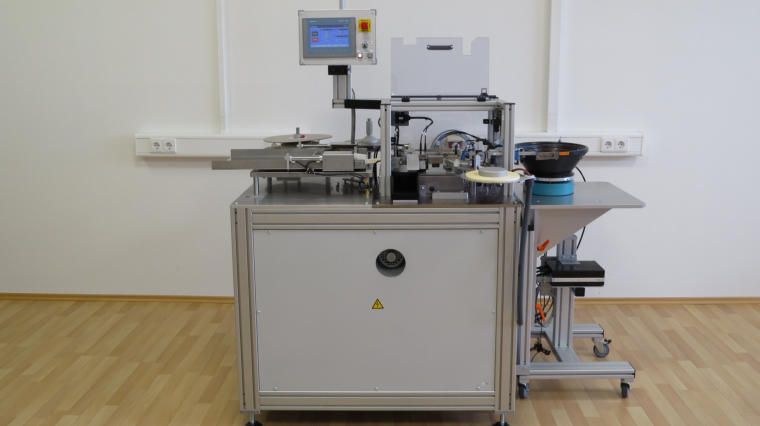 Automat zum Gurten von elektronischen Bauelementen mit radialen Drahtanschlüssen. Zuführung von •Fördertopf•Hand (bei geringen Stückzahlen)Maschinenbeschreibung:•Gurtungsverfahren: Heißkleben•Trägerband 18 mm; Deckband wahlweise 6 oder 13 mm•Standard- oder kundenspezifische Werkzeugausführungen•Bauteilabstand im Gurt: 12,7 mm (1/2), 25,4 mm (1) oder 15 mm;Gurtlochabstand: 12,7 mm oder 15 mm•Standardausrüstung mit Gurtaufspulvorrichtung für Rollen, optional Ammopack•Test- und Drehstation möglich•Klarsicht-Schutzgehäuse, optional ESD-fähig•Zuführmöglichkeiten:oAuswechselbare, fest eingestellte Zuführung für individuelle BauelementprofileoBauelement-Zuführung nur mit TestvorrichtungoBauelement-Zuführung mit Test- und WendevorrichtungoManuelle Einlegevorrichtung für kleine Stückzahlen•Signalanzeige für Betriebszustand (optional)•Wahlweise Biviator oder SPS-Steuerung Siemens S7; verschiedene Parameter einstellbar; Klartextanzeige•Einfaches Umrüsten auf einen anderen Bauteiltyp in wenigen Minuten•Leistung: bis zu 4.000 Bauteile pro Stunde (abhängig vom Bauteil und der Bearbeitung); stufenlos regelbar•Antrieb elektrisch (Drehstrommotor)•Ansteuerung der Werkzeuge über Kurven•Leistungsaufnahme: max. 900 W•Betriebspannung: 230V/50Hz (Standard), auf Wunsch Sonderspannungen möglich•Luftanschluss: 6 Bar•Länge x Breite x Höhe (ohne Zubehör): 1600 x 800 x 1500 mm•Gewicht: ca. 120 kg (ohne Zubehör)